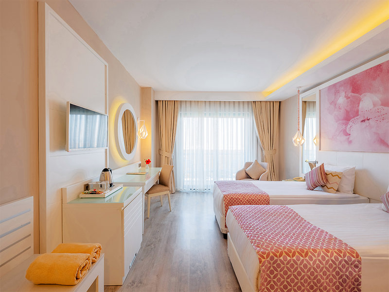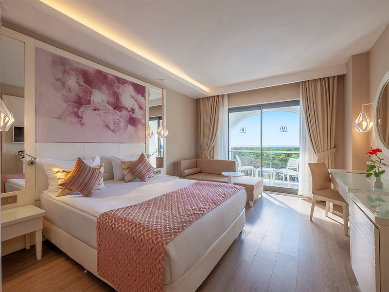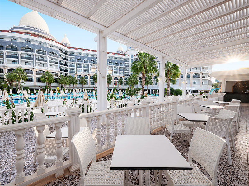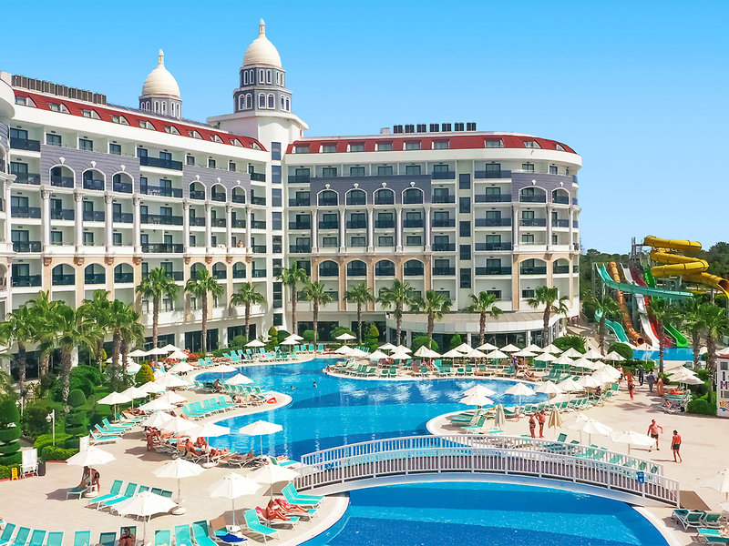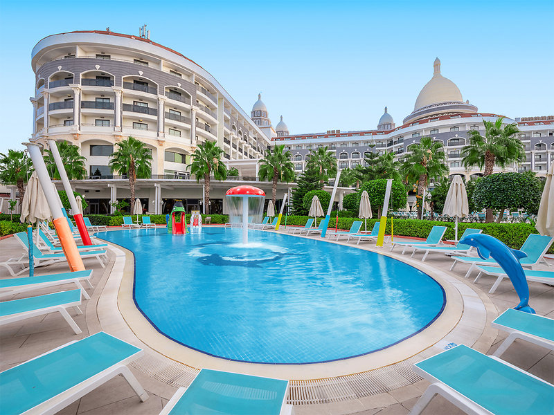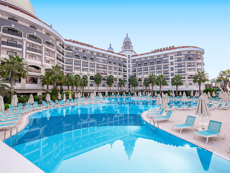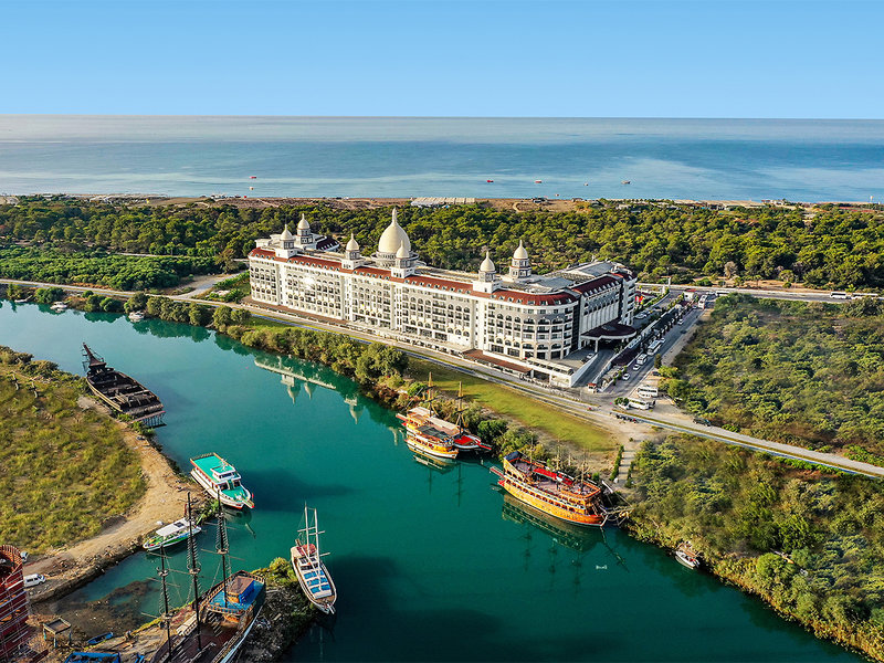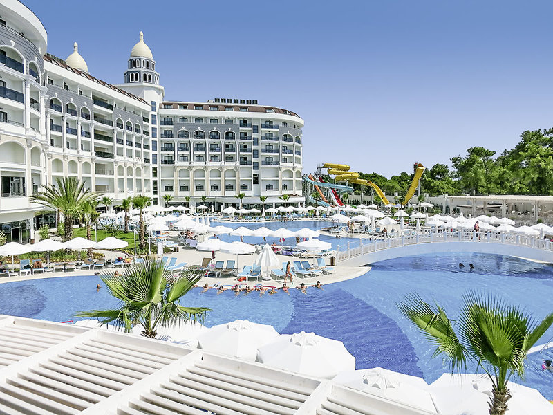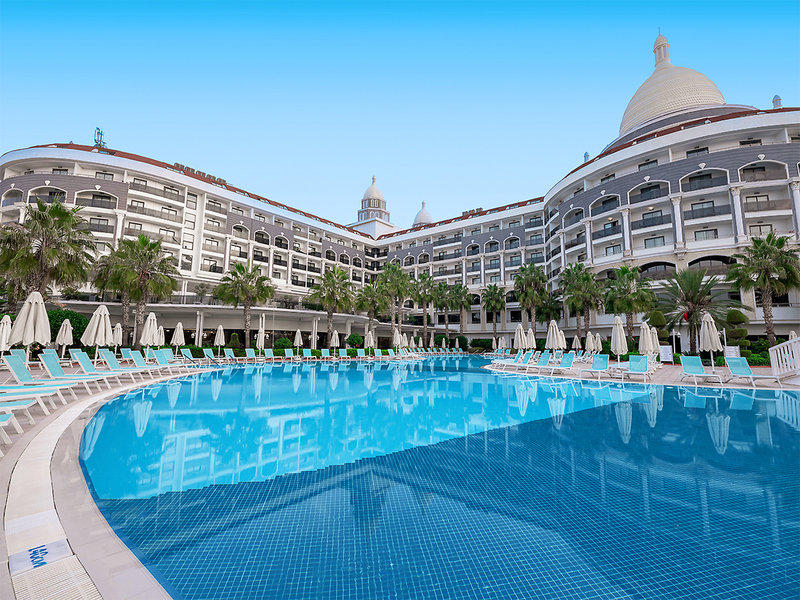 Ausstattung: Modern gestaltetes Hotel der Luxusklasse mit großem Swimmingpool, Wasserrutschen (stdw./wetterabhängig), Sonnenterrasse, Pool-/Strandbar. Sonnenschirme, Liegen am Pool und am Strand. Empfangshalle, Rezeption, WLAN in der gesamten Anlage, Lobbybar. Hauptrestaurant, 2 À-la-carte-Restaurants (türkisch, italienisch; Reservierung erforderlich), Patisserie, Bistro, Geschäfte, Friseur. Landeskategorie: 5 Sterne, 496 Zimmer, Lifte.