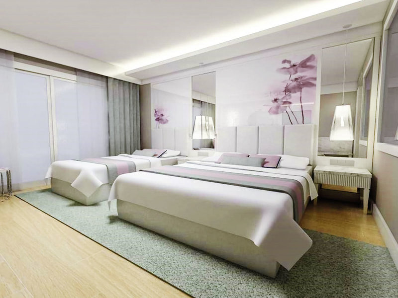 Familienzimmer (FZB, ca. 54 qm), 2 sep. Schlafzimmer, Klimaanlage, TV (26 Zoll), Telefon, Safe. Dusche, WC, Föhn. 2 Balkone. Max. 4E