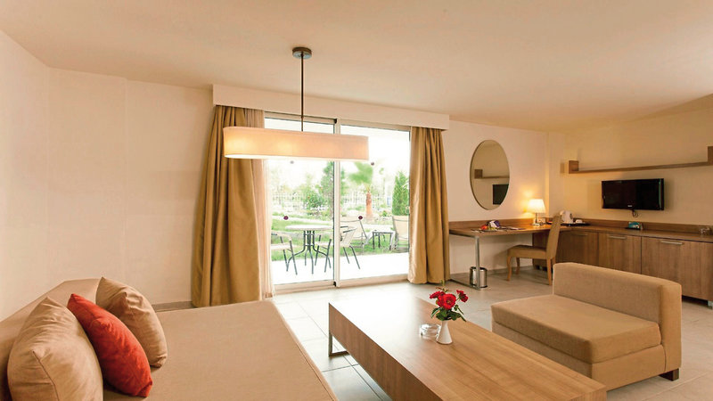 - 31-35 qm, Familien, separates Schlafzimmer, Doppelbett, Sofabett, Dusche, WC, Haartrockner, Laminatboden, Klimaanlage, zentral gesteuert, Minibar, Auffüllung täglich, Wasser, Safe (kostenpflichtig), TV (Sat-TV), Balkon