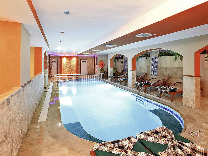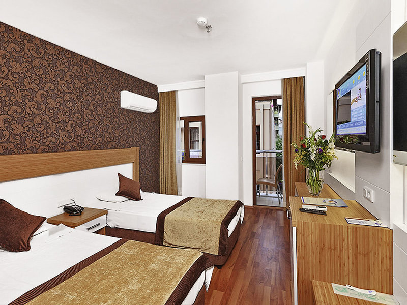 Ausstattung: Mittelklassehotel mit Haupthaus und 2 Wohngebäuden. Im Außenbereich Swimmingpool mit Kinderbecken und Pool-/Snackbar. Schirme, Liegen und Auflagen am Pool inkl./am Strand geg. Gebühr. Alle Außeneinrichtungen wetterabhängig und nach Ermessen des Hoteliers geöffnet. Empfangshalle, Rezeption und WLAN, Fernsehecke, Friseur, Hauptrestaurant mit Außenterrasse, À-la-carte-Restaurant. Landeskategorie: 3 Sterne, 222 Zimmer, 5 Etagen, 6 Lifte.