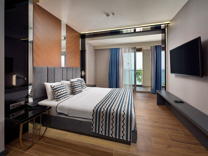 - Double Standard Sea View (DZM1), Doppelzimmer, Nichtraucherzimmer, Mindestalter im Zimmer: 0 Jahre, im Hauptgebäude, Meerseite, Meerblick, Blick auf sea, ca. 30 m², letzte Komplettrenovierung 2024, 1 Einzelbett (100x200cm), 1 Doppelbett (160x200cm), Babybett, Klimaanlage: individuell regelbar, kalt, warm, Heizung: individuell regelbar, Fußboden: Fliesenboden, Safe: gegen Gebühr, Barzahlung, Wäschetrockner, Minibar: Wasser, Telefon, Internet: WLAN/WiFi: ohne Gebühr, Fernseher: Flatscreen, im Schlafzimmer, deutsches Programm, Sat-TV, Roomservice: gegen Gebühr, Reinigungsservice: täglich, ohne Gebühr, Dusche, WC, Föhn, Kosmetikspiegel, Balkon: mit Sitzgelegenheit