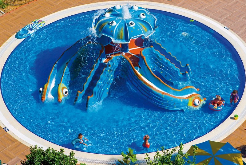 - 1 Pool: ca. 1.4.-31.10., Süßwasser, Wasserrutschen: 3 (stundenweise in Betrieb), Sonnenschirme, Liegen, Badetuch