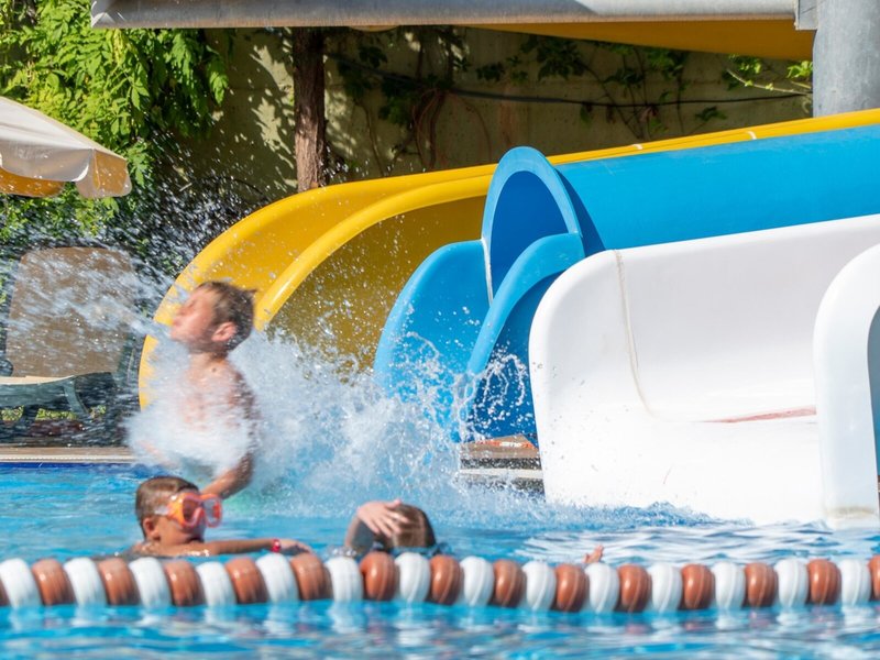 - Detský bazén Detský bazén so šmykľavkami: zadarmo, sladká voda, tobogán, ležadlá: zadarmo, slnečníky: zadarmo