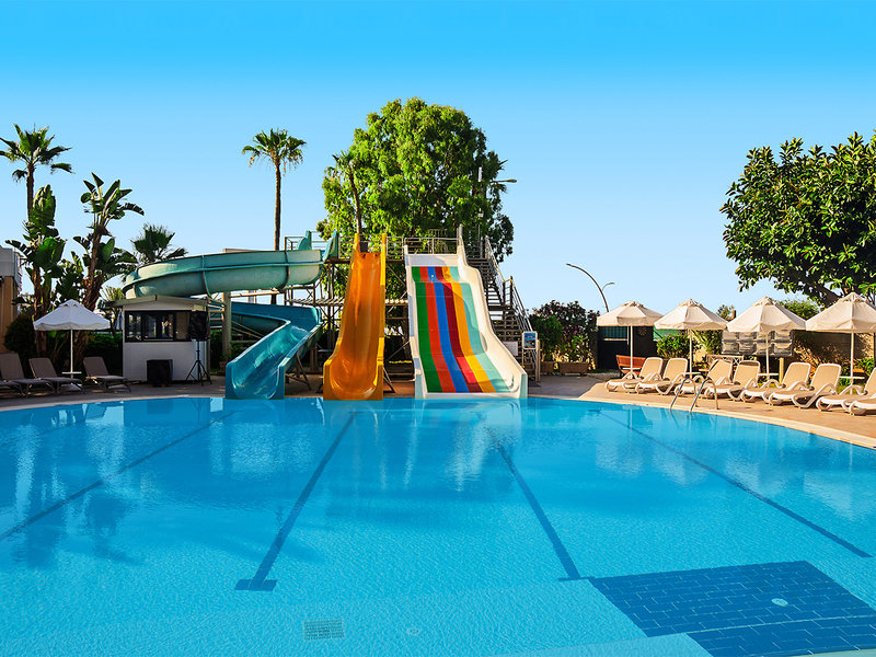 Vybavenie: Hlavný bazén, samostatný bazén s tobogánmi (otvorený v stanovených časoch), slnečné terasy. Lehátka, vankúše, slnečníky, plážové osušky. Bar pri bazéne/s občerstvením/na pláži. Recepcia, posedenie, Wi-Fi (lobby), 5 barov, reštaurácia s panoramatickým výhľadom, 3 reštaurácie à la carte, obchody, cukráreň. Oficiálne hodnotenie: 5 hviezdičiek, 334 izieb, 7 poschodí, 5 výťahov.