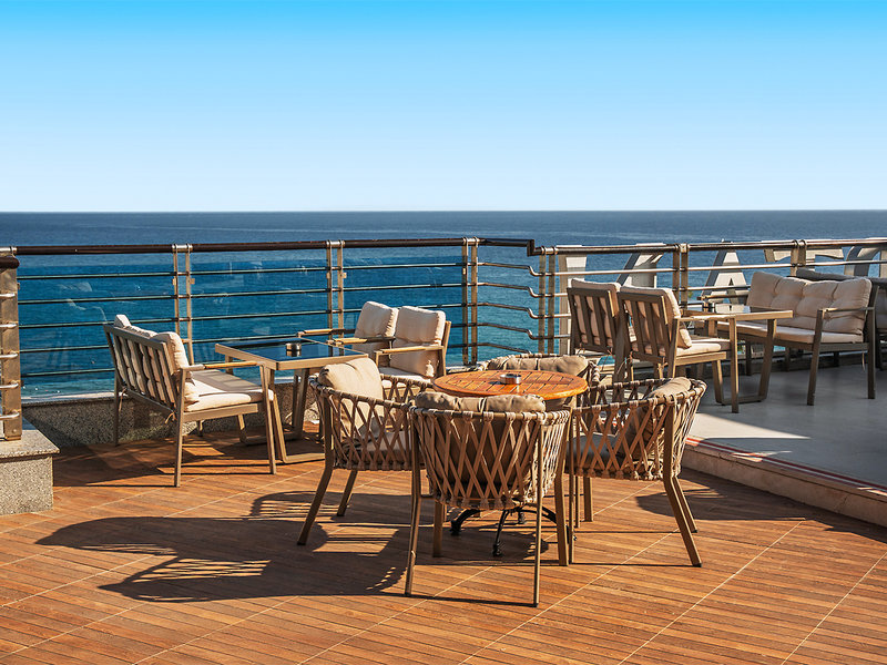 Ausstattung: Hauptpool, separater Rutschenpool (stdw.), Sonnenterrassen. Liegen, Auflagen, Schirme, Badetücher. Pool-/Snack-/ Strandbar. Rezeption, Sitzgelegenheiten, WLAN (Lobby), 5 Bars, Restaurant mit Panoramablick, 3 À-la-carte-Restaurants, Geschäfte, Patisserie. Landeskategorie: 5 Sterne, 334 Zimmer, 7 Etg., 5 Lifte.