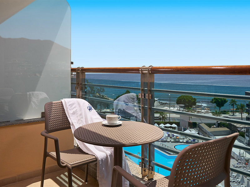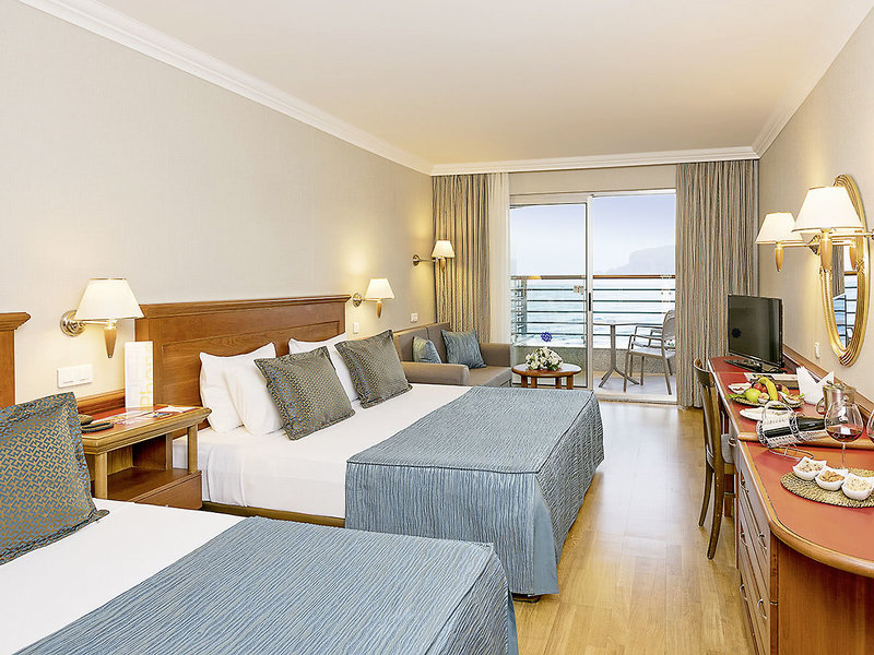 Wohnen: Doppelzimmer (DZ, ca. 25 qm), Sofaecke, Klimaanlage (stdw.), Minibar, Wasserkocher, Telefon, TV, WLAN (gegen Gebühr), Safe. Dusche, WC, Föhn. Balkon, wahlweise seitlicher Meerblick (DSM). Max 3E+1K, zur Alleinbenutzung buchbar (EZS, ESM)