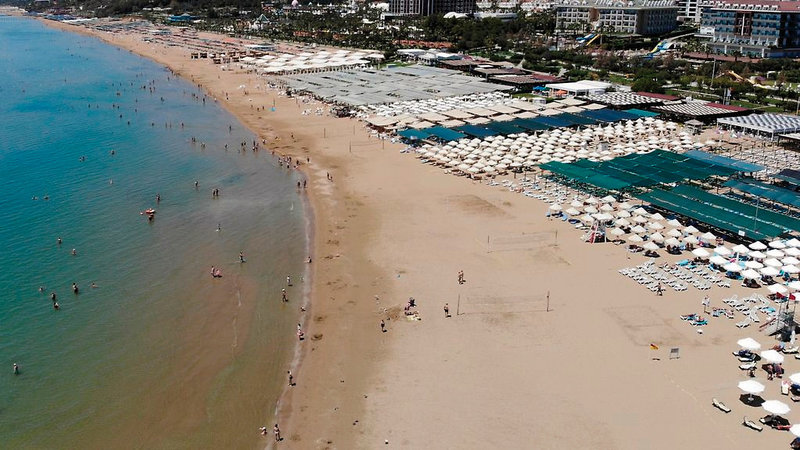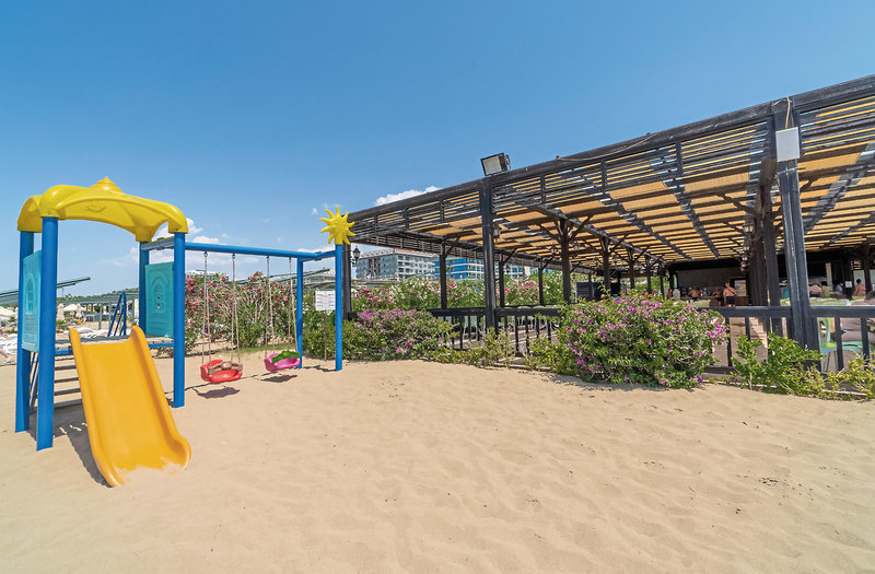 - Piesočnatá pláž: mierne svahovita, oddelená od rezortu promenádou, slnečníky, ležadlá, plážové osušky/uteráky, plážový servis (cca 1.4.-31.10.), cca 1.4.-31.10.