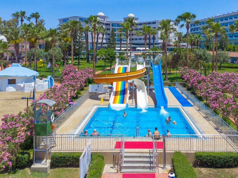 - 1 Pool: ca. 1.4.-31.10., 80 qm, Süßwasser, Wasserrutschen: 3 (ca. 1.5.-31.10., stundenweise in Betrieb), Sonnenschirme, Liegen, Badetuch