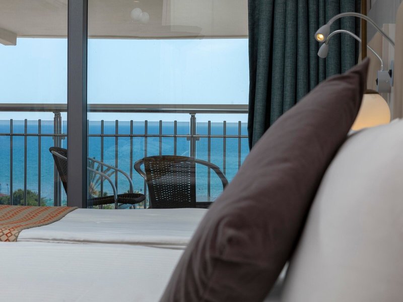 - 21-25 m², dvojlôžková izba, hlavná budova, výhľad na more, 1 kúpeľňa, sprchovací kút, 1 WC, fén, laminátová podlaha, klimatizácia, minibar (pravidelne dopĺňaný), nealkoholické nápoje, voda, trezor, 1 TV (satelitná TV, plochá obrazovka), rýchlovarná kanvica, káva/čaj, balkón