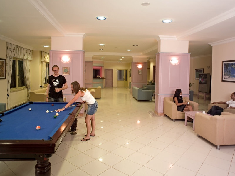 Sport & Fitness: Aktive Erholung erwartet die Gäste im Poolbereich mit 2 Outdoorpools. Das Hallenbad bietet witterungsunabhängiges Badevergnügen. Darüber hinaus gibt es einen Planschbereich für Kinder. Nervenkitzel auf der Wasserrutsche, erfrischende Getränke an der Poolbar und wohlige Muskelentspannung im Whirlpool – für jede Stimmung und Kondition bietet der Badebereich etwas an. Bequeme Liegestühle und Schatten spendende Schirme stehen auf der Sonnenterrasse bereit. Wer auch auf Reisen nicht auf Sport verzichten möchte, dem bietet die Unterbringung Beachvolleyball. Den Gästen steht im Haus mit einem Fitnessstudio, Tischtennis, Billard und Darts ein breites Spektrum an Indoor-Sportarten zur Auswahl. Das Hotel verfügt über einen Wellnessbereich mit einem Spa und einem Hammam sowie gegen zusätzliche Gebühr eine Sauna und Massage-Anwendungen. Ein Animationsprogramm und ein Miniclub sind Möglichkeiten der Freizeitgestaltung.