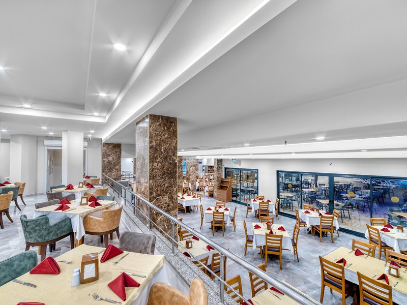 Jedlo a pitie: K možnostiam stravovania patrí kaviareň a bar. Hostia si môžu vychutnať kulinárske špeciality v nefajčiarskej reštaurácii s klimatizáciou a vysokými stoličkami. Osviežujúce nápoje v plážovom bare sa postarajú o chvíle pohody. Rezort ponúka stravovanie formou polpenzie a all inclusive formou rezervovateľných jedál. Na raňajky, obed a večeru čaká na hostí lahodný a bohatý bufet. V prípade potreby je možné pripraviť aj detské menu. Zariadenie poskytuje aj občerstvenie.