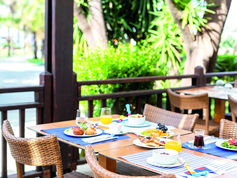 - Hlavná reštaurácia Hlavná reštaurácia: Kuchyňa: medzinárodná, stredomorská, regionálna, turecká, ryby/morské plody, grilované jedlá, detský bufet, bufet, denne 7:00 - 10:00, 10:00 - 11:00, 12:00: 30:00 - 14:30 a 18:30 - 21:00, s terasou