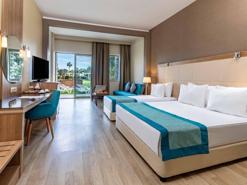 - Double Standard Landview single with child (DSG1), Doppelzimmer, im Hauptgebäude, Landseite, Gartenblick, ca. 19 - 20 m², Gesamtanzahl der Räume in diesem Zimmertyp: 1, Aufteilung wie folgt: 1 Schlafzimmer, Klimaanlage: ohne Gebühr, zentral gesteuert, Heizung, Fußboden: Laminat, Safe: ohne Gebühr, Minibar: ohne Gebühr, Softdrinks: ohne Gebühr, Wasser: ohne Gebühr, Minibarauffüllung: täglich, Telefon, Internet: WLAN/WiFi: ohne Gebühr, Fernseher: deutsches Programm, Sat-TV, Roomservice: gegen Gebühr, Dusche, WC, Föhn, Balkon