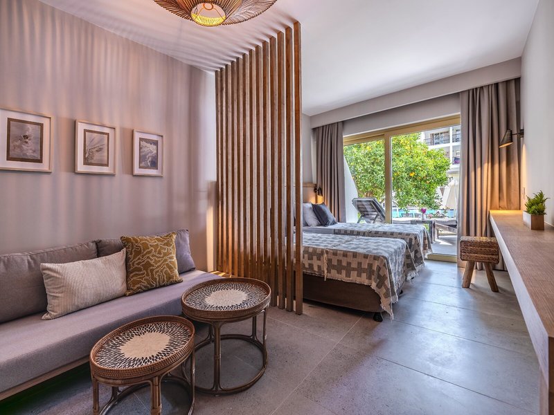 - Angel Suite (SUX1), Appartement, Poolseite, Poolblick, ca. 42 m², letzte Komplettrenovierung 2024, letzte Teilrenovierung 2024, Gesamtanzahl der Räume in diesem Zimmertyp: 2, Aufteilung wie folgt: kombiniertes Wohn-/Schlafzimmer, 1 Schlafzimmer, 2 Einzelbetten, 1 Doppelbett, 1 Schlafsofa, Babybett: ohne Gebühr, Anfrage & Reservierung notwendig, Klimaanlage: ohne Gebühr, saisonabhängig, kalt, warm, Heizung, Fußboden: Parkett, Safe: ohne Gebühr, Sofa, Schreibtisch, Küche, Kühlschrank: ohne Gebühr, Wasserkocher, Telefon, Internet: WLAN/WiFi: gegen Gebühr, Fernseher, Roomservice: täglich 11:00 Uhr - 23:00 Uhr, gegen Gebühr, Barzahlung, Reinigungsservice: täglich 09:00 Uhr - 16:00 Uhr, ohne Gebühr, Badewanne oder Dusche, WC, Balkon: mit Sitzgelegenheit, Balkon oder Terrasse, Terrasse