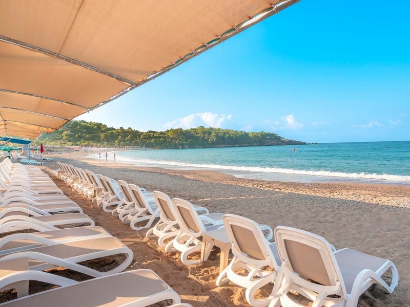 - Pláž: piesočná, štrková, strmo sa zvažujúca, dĺžka pláže: cca 250 m, schody na pláž, súkromná, ležadlá: zadarmo, ležadlá: zadarmo, slnečníky: zadarmo