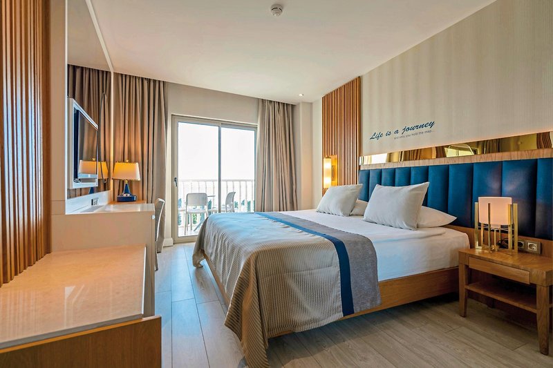 - 26-30 m2, dvojlôžková, štandardná, hlavná budova, výhľad na more, nefajčiarska, posteľná bielizeň, uteráky a matrace zo 100% organickej bavlny, sprcha, WC, fén, klimatizácia, centrálne ovládané, minibar, pravidelne dopĺňaný, trezor , 1 TV (satelitná TV, plochá obrazovka), balkón