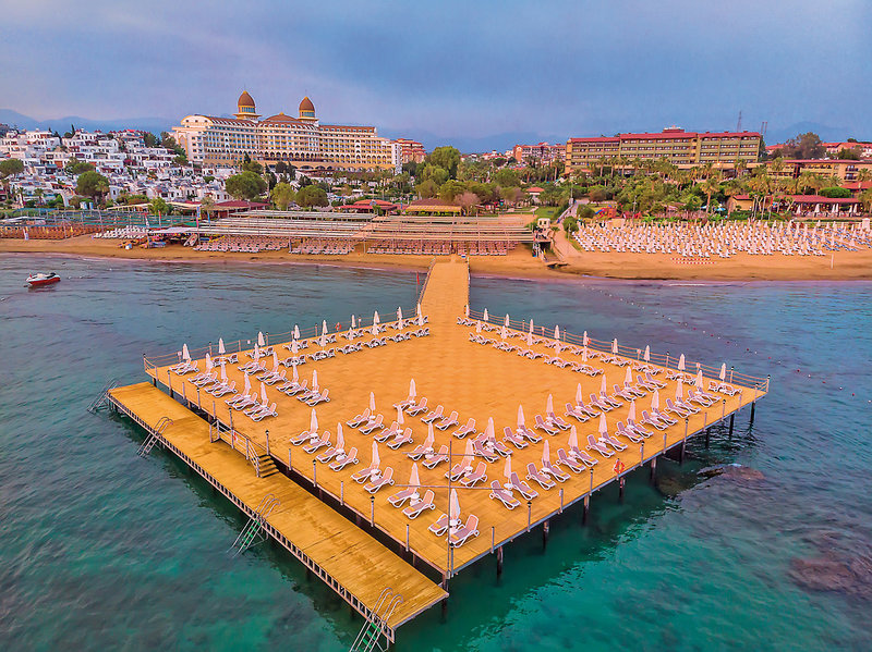 - Sandstrand: leicht abfallend, gehört zur Anlage, von der Anlage getrennt durch Promenade, Sonnenschirme, Liegen, Strandtuch/Badetuch