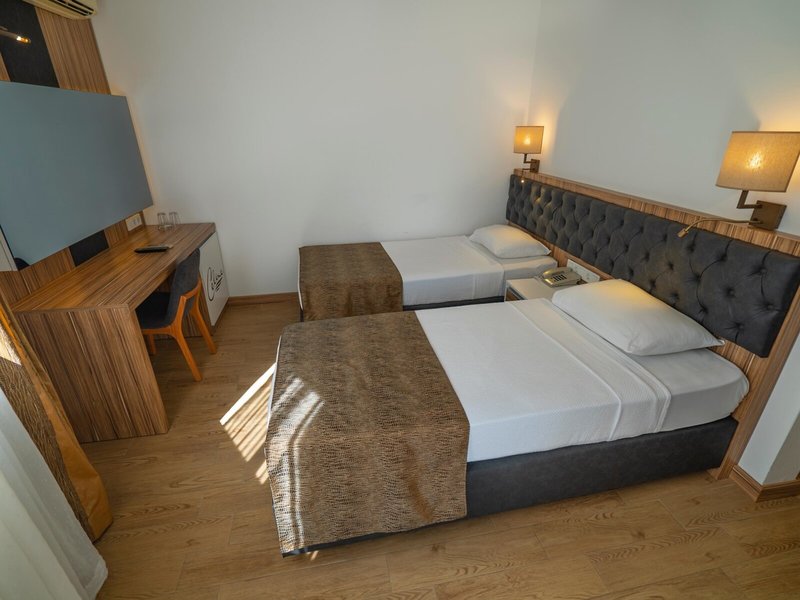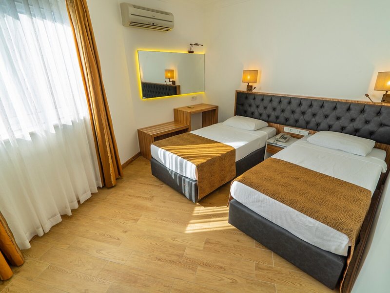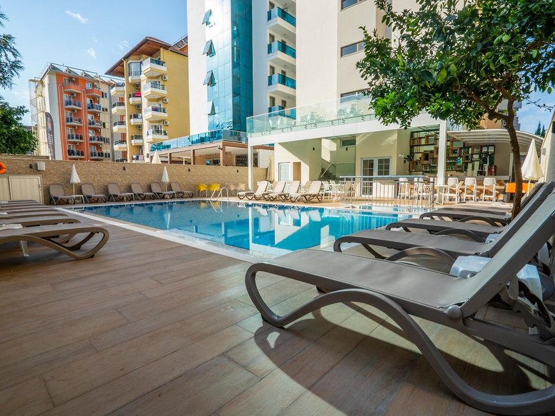 Ausstattung: Pool, Kinderpool, Wasserrutsche. Liegen, Schirme, Auflagen am Pool und am Strand (geg. Geb.), Pool-Bar. Empfangshalle, Rezeption, Lobby-Bar, TV-Lounge. Restaurant (Buffet) mit Terrasse. 65 Zimmer, 5 Etagen, Lift.