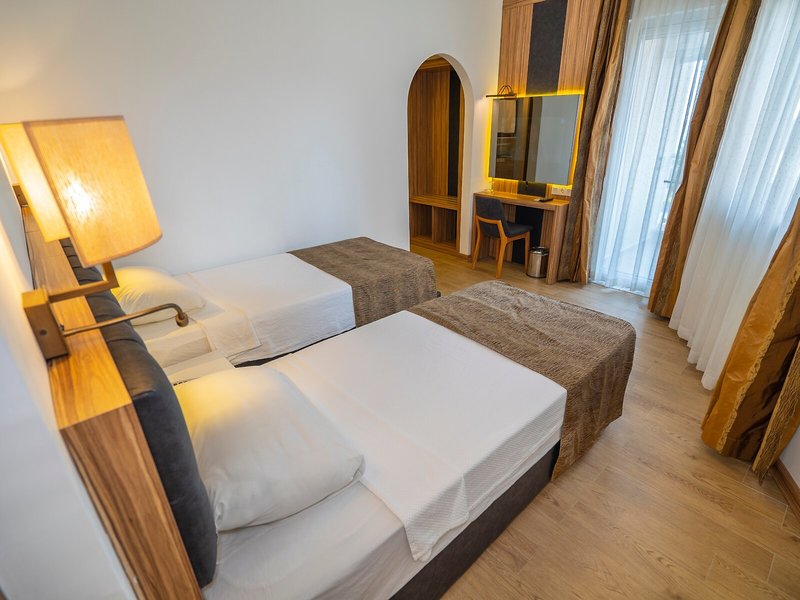 Ubytovanie: Štandardná dvojlôžková izba (balkón, čiastočný výhľad na more): Minichladnička (za poplatok). Uteráky. TV, telefón, internet (za poplatok), trezor (za poplatok). Vaňa/sprcha, WC, fén. Balkón. Max. 2 dospelí.