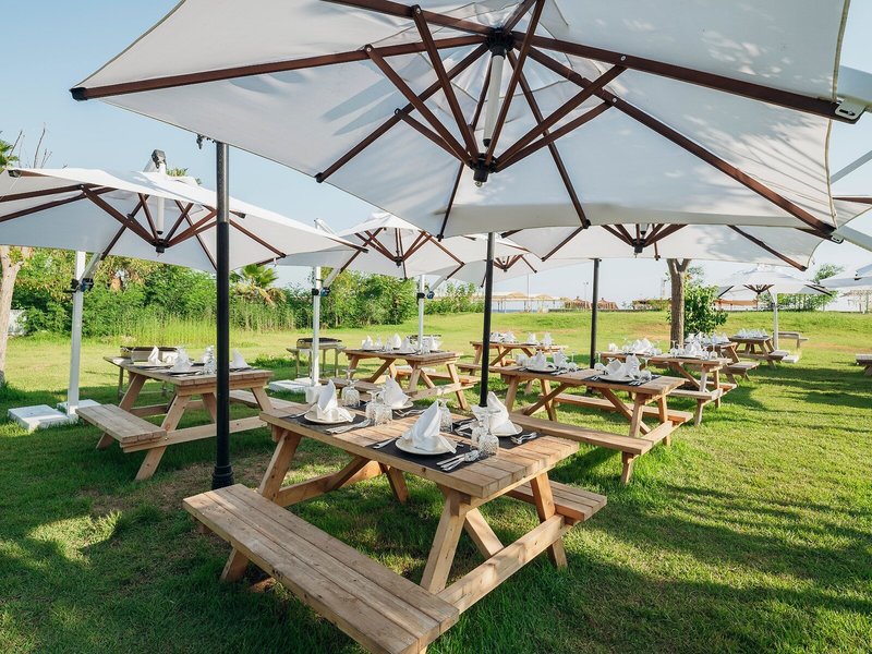 - Spezialitätenrestaurant „Tabla Turkish A'la Carte“: Küche: türkisch, à la carte, Menüwahl, Reservierung notwendig, gegen Gebühr, saisonabhängig, mehrmals pro Woche 19:00 Uhr - 22:00 Uhr, klimatisierbar, mit Terrasse, am Strand, Raucherbereich, Kinderhochstuhl, angemessene Kleidung erwünscht