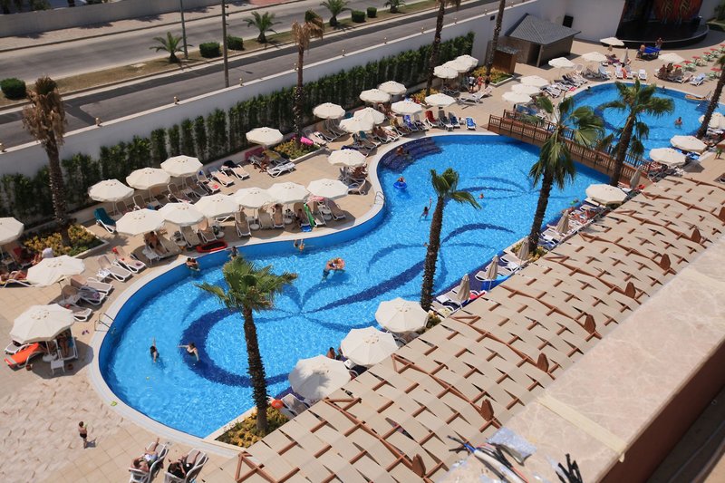 Ausstattung: Die moderne Hotelanlage besteht aus insgesamt 225 Zimmern, verteilt auf zwei Gebäuden mit jeweils fünf Etagen (Lifts vorhanden). Zu den Einrichtungen gehören eine Empfangshalle mit Rezeption, Sitzgelegenheiten und eine Lobbybar. Wi-Fi ist in der gesamten Anlage und am Strand inklusive. Ein Buffetrestaurant, zwei À-la-carte-Restaurants (einmal pro Aufenthalt nach Verfügbarkeit und mit Voranmeldung inklusive), Patisserie, verschiedene Bars und an bestimmten Tagen Diskothek (Getränke gegen Gebühr). Einige Geschäfte, Friseur, ein gut ausgestattetes Spa-Center (jeweils gegen Gebühr) und Hallenbad (in der Wintersaison offen). Ein großer Süßwasser-Swimmingpool mit separatem Kinderbecken, Wasserrutschen (stundenweise) und Pool-/Snackbar. Sonnenschirme, Liegen mit integrierten Liegen mit integrierten Auflagen und Badetücher für Pool und am Strand mit Strand-/Snackbar sind inklusive.