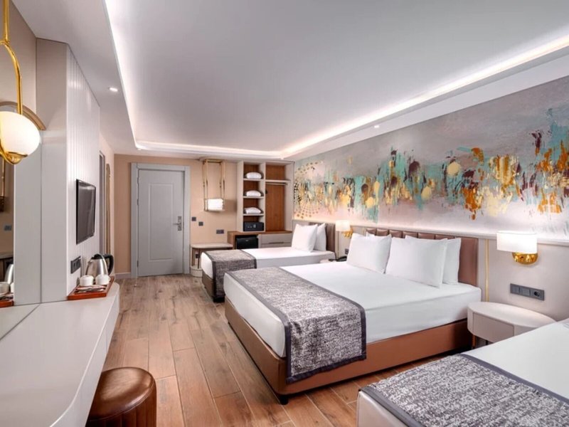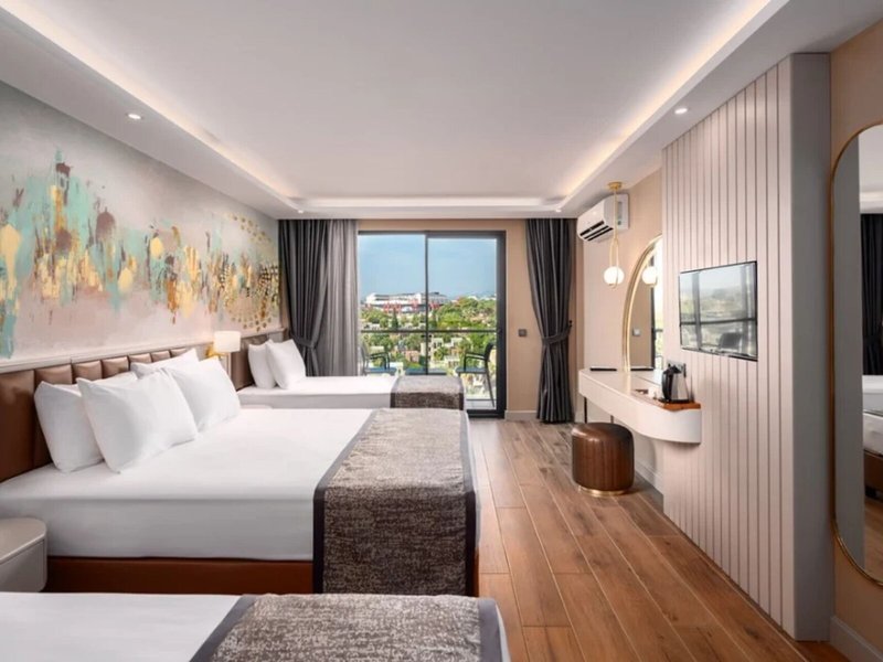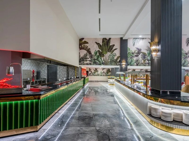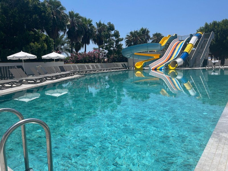 Šport & Fitness: Okrem vnútorných a vonkajších bazénov je tu aj detský kútik. Okrem toho osviežujúce nápoje pri bazéne/snack bare a tobogán dodajú všetkým vodným potkanom tú najlepšiu náladu. Dovolenku si môžete užiť na slnečnej terase s ležadlami a slnečníkmi. Mnoho rôznych aktivít, ktoré sú ponúkané v rezorte, ako je tenis, plážový volejbal, volejbal a basketbal, ponúka športové spestrenie. Vďaka vodnému lyžovaniu a jazde na banánovom člne osloví táto nehnuteľnosť aj nadšencov vodných športov. Hostia si môžu vybrať zo širokej ponuky indoorových športov v areáli s posilňovňou, stolným tenisom, biliardom a šípkami. Rezort ponúka rôzne možnosti wellness, ako sú kúpele, sauna, hammam a masáže. Animačný program, miniklub, diskotéka a nočný klub zabezpečia tú najlepšiu zábavu vo voľnom čase.