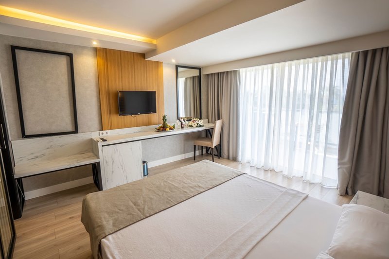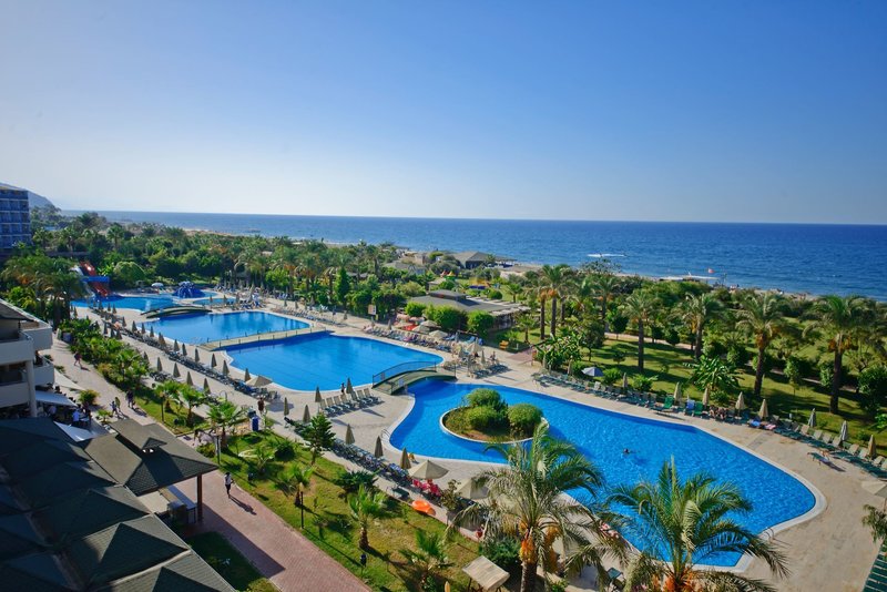 Ausstattung: Die weitläufige Anlage ist auf insgesamt 60.000 m² errichtet und bietet 486 Zimmer, die sich auf ein Gebäude mit sieben Etagen verteilen. Die Empfangshalle besteht aus Rezeption, Lobby mit gemütlichen Sitzgruppen und Lobbybar. Wi-Fi ist gegen Gebühr. Zu den Einrichtungen zählen ein Buffetrestaurant mit Terrasse, zwei À-la-carte-Restaurants (einmal bei sieben Nächten Aufenthalt nach Voranmeldung inklusive), mehrere Bars, Patisserie, Konferenzräume, verschieden Geschäfte (gegen Gebühr), Hallenbad mit integriertem Kinderbecken und ein Wellnesscenter. Im Außenbereich befinden sich neben der Animationsbühne Zwei Süßwasser-Swimmingpool mit separatem Kinderbecken, ein weiterer Pool mit fünf Wasserrutschen (stundenweise), ein Kinderbecken mit fünf Wasserutschen, eine Pool-/Snackbar und die Sonnenterrasse. An den Pools und am Strand mit Beach-/Snackbar sind Liegen, Sonnenschirme und Badetücher inklusive.