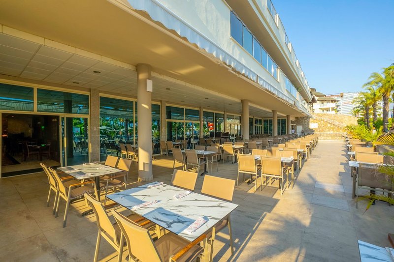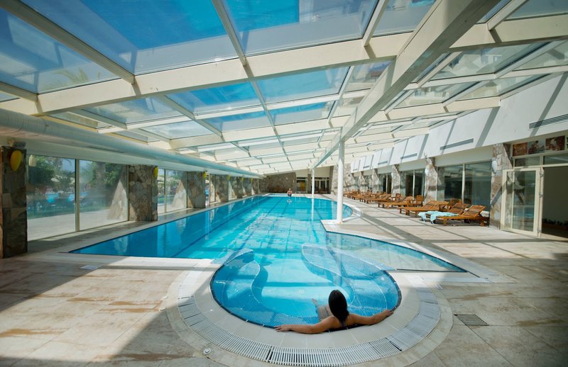 Vybavenie: Rozsiahly komplex je postavený na celkovej ploche 60 000 m² a ponúka 486 izieb rozložených v budove so siedmimi poschodiami. Recepčná hala pozostáva z recepcie, lobby s pohodlným posedením a lobby baru. Wi-Fi je za poplatok. K vybaveniu patrí bufetová reštaurácia s terasou, dve à la carte reštaurácie (jedna zahrnutá pri pobyte na 7 nocí po predchádzajúcej rezervácii), niekoľko barov, cukráreň, konferenčné miestnosti, rôzne obchody (za poplatok), krytý bazén s integrovaným detský bazén a wellness centrum. Vo vonkajšom areáli sa okrem animačného pódia nachádzajú dva sladkovodné bazény so samostatným detským bazénom, ďalší bazén s piatimi tobogánmi (hodinový), detský bazén s piatimi tobogánmi, bazén/snack bar a slniečko. terasa. Ležadlá, slnečníky a plážové osušky sú zahrnuté v cene pri bazénoch a na pláži s plážovým/snack barom.