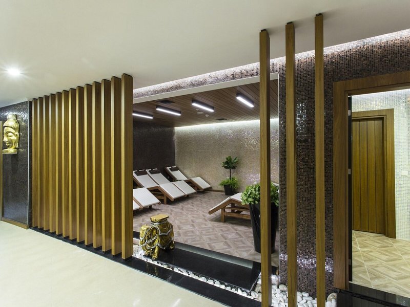 Šport & Fitness: Aktívny oddych čaká hostí v bazénovej časti s 2 vonkajšími bazénmi. Krytá plaváreň ponúka potešenie z kúpania bez ohľadu na počasie. Ležadlá a slnečníky zaručujú hodiny relaxácie. Osviežujúce nápoje sú ponúkané v snack bare pri bazéne. Dom ponúka veľmi rozsiahly outdoorový športový program s plážovým volejbalom, minigolfom a golfom, ako aj tenis za poplatok. Hostia si môžu vychutnať rôzne vodné športy, vrátane plavby na katamaráne a vodného aerobiku. Šnorchlovanie je k dispozícii za poplatok. Hostia si môžu vybrať zo širokej škály indoorových športov v hoteli vrátane stolného tenisu, biliardu, šípok, gymnastiky a aerobiku. Hotel ponúka wellness centrum so saunou a parným kúpeľom, ako aj kozmetický salón a masáže za príplatok. Animačný program, detský klub, diskotéka a nočný klub zabezpečia tú najlepšiu zábavu vo voľnom čase.