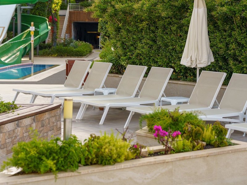 - Vonkajší bazén: pre deti od 4 rokov, zdarma; ležadlá: zadarmo; skladacie stoličky: zadarmo; slnečníky: zadarmo; slnečníky: zadarmo