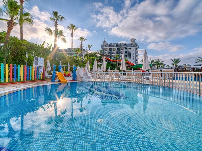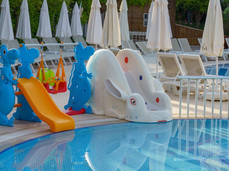 - Pool „Main pool“: ab 4 Jahre, ohne Gebühr, Outdoor, Anzahl Wasserrutschen: 3, ohne Gebühr, Liegen: ohne Gebühr, Liegestühle: ohne Gebühr, Sonnenschirme: ohne Gebühr, Sonnendächer: ohne Gebühr