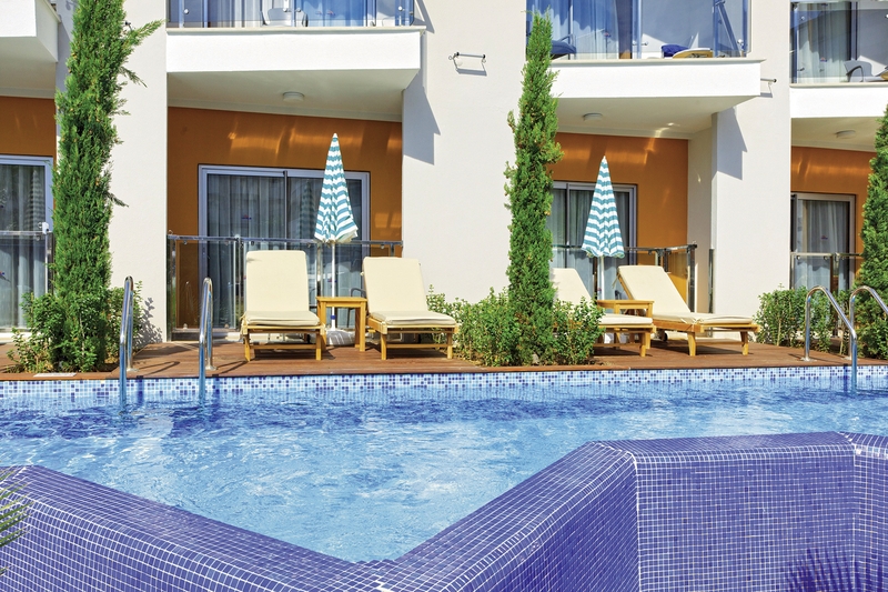 - Doppel, Nebengebäude, Hauptgebäude, unteren, Poolblick (direkt), 1 Bad, Dusche, WC, Bademantel, Badeslipper, Haartrockner, Laminatboden, Klimaanlage, individuell regulierbar, Minibar, Auffüllung täglich, Softdrinks, Wasser, Safe, 1 TV (Sat-TV), Terrasse (möbliert)