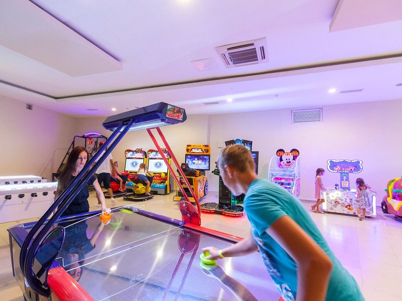 Sport & Fitness: Aktive Erholung erwartet die Gäste im Poolbereich mit 2 Outdoorpools. Das Hallenbad bietet witterungsunabhängiges Badevergnügen. Darüber hinaus gibt es einen Planschbereich für Kinder. Nervenkitzel auf der Wasserrutsche, erfrischende Getränke an der Poolbar und wohlige Muskelentspannung im Whirlpool – für jede Stimmung und Kondition bietet der Badebereich etwas an. Auf der Sonnenterrasse mit Liegestühlen und Schirmen lässt sich der Urlaub genießen. Wem der Sinn nach Bewegung steht, werden Radfahren/Mountainbiking, Boccia und Beachvolleyball angeboten. Eine Vielzahl an Sportarten steht zur Verfügung, darunter Wassersportarten wie Schnorcheln und Tauchen und gegen Gebühr Wasserskifahren, Windsurfen, Jetskifahren, Tretbootfahren, Bananenbootfahren und Kanufahren. Das Resort bietet eine Vielzahl an Möglichkeiten zur sportlichen Aktivität im Indoor-Bereich, z.B. ein Fitnessstudio und Darts sowie gebührenpflichtig Tischtennis und Billard. Die Anlage verfügt über einen Wellnessbereich mit einem Spa, einer Sauna, einem Dampfbad, einem Hammam und einem Solarium sowie gegen zusätzliche Gebühr einen Schönheitssalon und Massage-Anwendungen. Zu den weiteren Freizeitangeboten zählen ein Miniclub, Live-Musik und eine Disco.