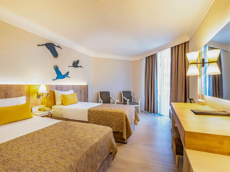 Ausstattung: Seit Jahren bei zahlreichen Stammgästen beliebtes Hotel der gehobenen Kategorie. In Meeresrichtung angelegter Garten, Poollandschaft, Sonnenterrassen, kleiner Rutschenpool (stdw.). Liegen, Schirme, Badetücher. Empfangshalle, Rezeption, Lobbybar. WLAN. Aufenthaltsraum, Hauptrestaurant, 3 Themen-À-la-carte-Restaurants (Fischspezialitäten, osmanische, italienische Küche), Minimarkt, Friseur, Diskothek. Landeskategorie: 5 Sterne, 326 Zimmer, 5 Etagen, 4 Lifte.