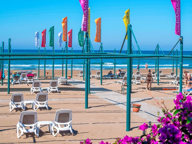 - Pláž: piesočná, mierne sa zvažujúca, ležadlá: bez poplatku, slnečníky: bez poplatku