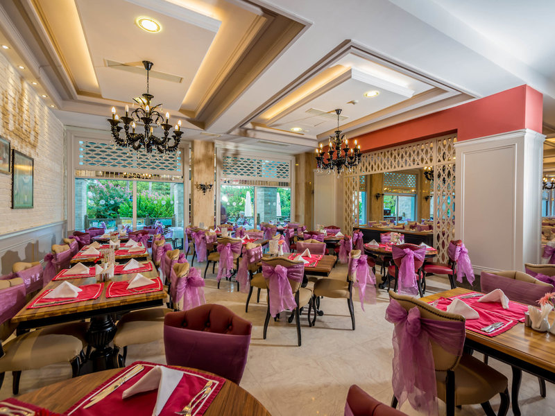 - Hlavná reštaurácia GARDENIA: kuchyňa: medzinárodná, bufet, bez poplatku, klimatizovaná, s terasou, detská stolička, vhodné oblečenie
