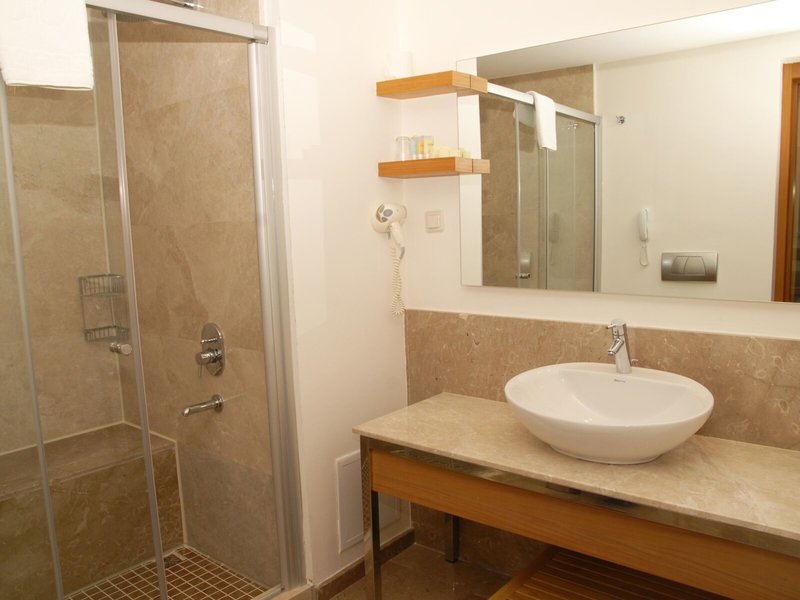 - Dvojlôžková izba Standard Economy (DZE1), dvojlôžková izba, v hlavnej budove, výhľad na krajinu, cca 22 - 22 m², celkový počet izieb v tomto type izby: 1, rozloženie: 1 spálňa, 1 manželská posteľ (160x190 cm) , klimatizácia: zadarmo, individuálne nastaviteľná, podlaha: laminát, trezor: zadarmo, príslušenstvo na prípravu kávy/čaju, minibar: voda: zadarmo, dopĺňaný minibar: denne, telefón, Internet: WLAN/WiFi: zadarmo, TV: plochá obrazovka, satelitná TV, upratovanie: denne, sprcha, WC, župan: zadarmo, fén, kozmetické zrkadlo