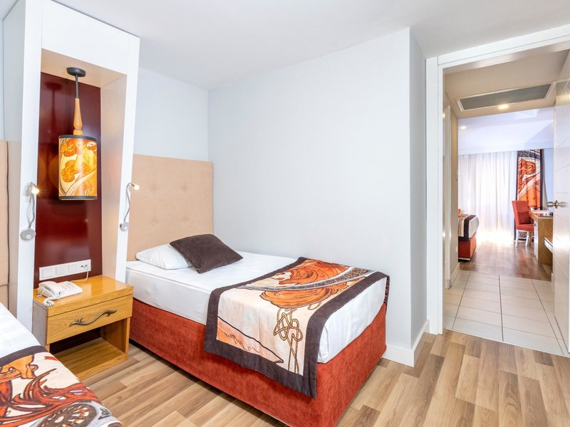 - Family Room (FZX1), Familienzimmer, Nichtraucherzimmer, im Hauptgebäude, Poolseite, Poolblick, Landblick, Blick auf LANDSEITE, ca. 35 m², letzte Komplettrenovierung 2014, letzte Teilrenovierung 2014, Gesamtanzahl der Räume in diesem Zimmertyp: 2, Aufteilung wie folgt: bestehend aus 2 Doppelzimmern mit Verbindungstür, Kinderzimmer, 1 Schlafzimmer, 2 Einzelbetten (90x175cm), 1 Doppelbett (140x200cm), Babybett: ohne Gebühr, Anfrage notwendig, Klimaanlage: zentral gesteuert, Heizung: zentral gesteuert, Fußboden: Laminat, Safe: gegen Gebühr, Sitzecke, Schreibtisch, Wasserkocher, Minibar: Softdrinks, Wasser, Minibarauffüllung: täglich, Telefon, Internet: WLAN/WiFi, Fernseher: Flatscreen, im Schlafzimmer, im Kinderzimmer, deutsches Programm, Sat-TV, Roomservice: gegen Gebühr, Dusche, WC, Bademantel: gegen Gebühr, Barzahlung, Föhn, Kosmetikspiegel, Balkon: mit Sitzgelegenheit, Balkon oder Terrasse: mit Sitzgelegenheit