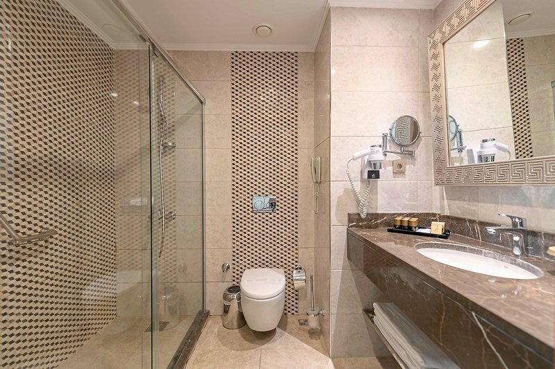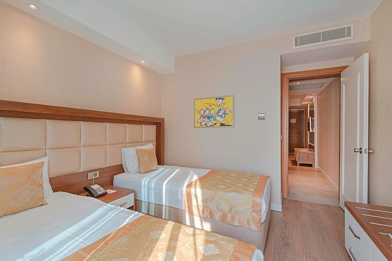 - 41-45 m², rodinná izba, so spojovacími dverami, prístavba, výhľad na bazén, 2 samostatné spálne, 2 jednolôžka, manželská posteľ, sprcha, WC, fén, kozmetické zrkadlo, klimatizácia, minibar (v zime: pri príchode, denne dopĺňaný), nealkoholické nápoje, voda, trezor, 2 televízory (satelitná TV), stereo systém, rýchlovarná kanvica, káva/čaj, balkón (zariadený, zastrešený)