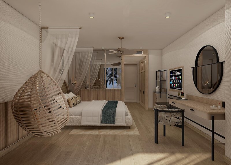 Standard Doppelzimmer (Poolblick): Klimaanlage (zentral gesteuert), Minibar (geg. Geb.). Wasserkocher, Handtücher. TV, Telefon, Internet (geg. Geb.). Bad/Dusche, WC, Föhn. Balkon. Max. 3E.