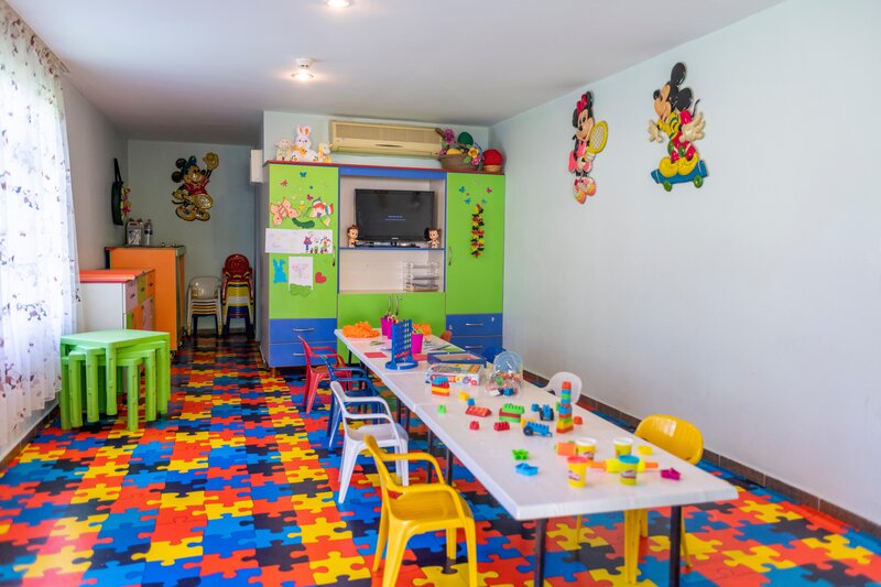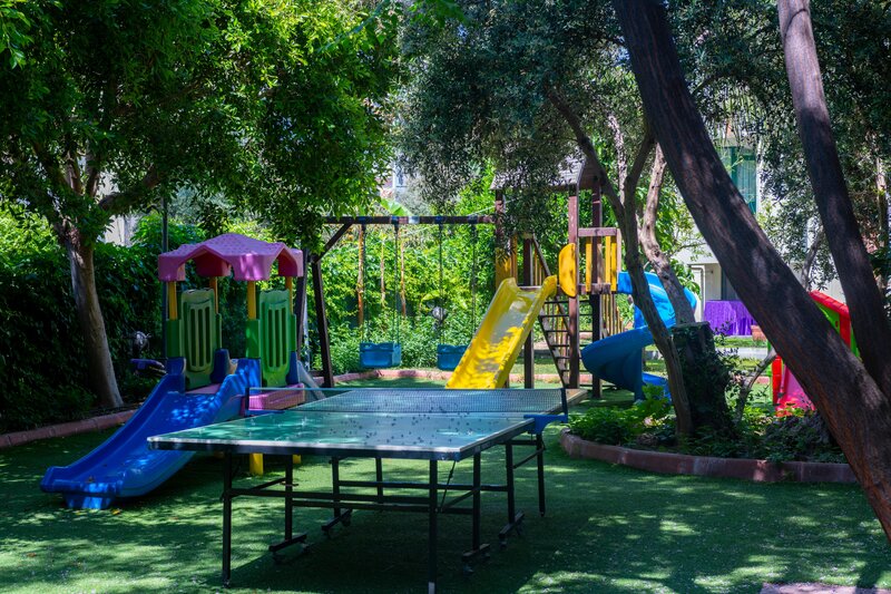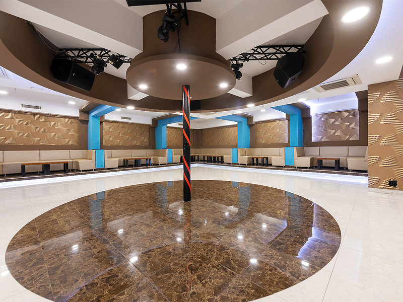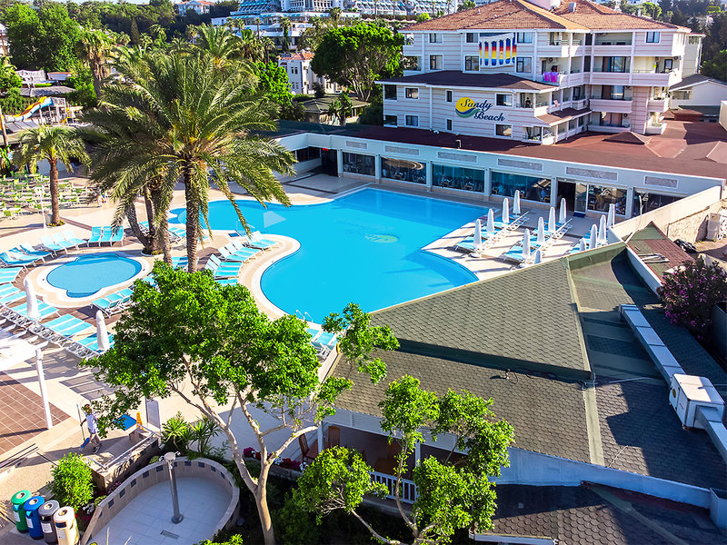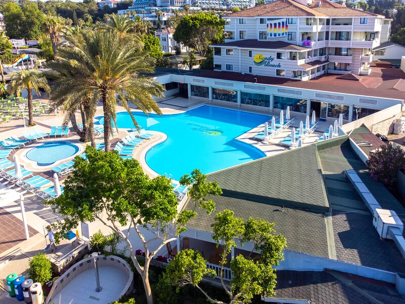 Ausstattung: Hotel der guten Mittelklasse, bestehend aus mehreren Gebäuden, mit einer ansprechenden Gartenanlage. Swimmingpool, Sonnenterrasse, Poolbar, Snackbar. Liegen, Auflagen, Schirme, Badetücher (Wechsel geg. Geb.). Außenbühne. Rezeption, WLAN, Hauptrestaurant, Terrasse, Bar, Friseur, Minimarkt. Landeskategorie: 4 Sterne, 261 Zimmer, 4-5 Etagen, 5 Lifte.