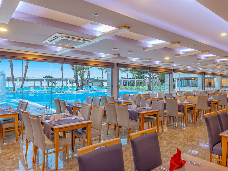 Poloha: Na privilegovanom mieste, od kilometrovej pláže s jemným pieskom oddelené plážovou promenádou. Obchody, reštaurácie v okolí. Historické centrum Side s množstvom nákupných a zábavných možností je vzdialené asi 30 minút chôdze (verejné minibusy).