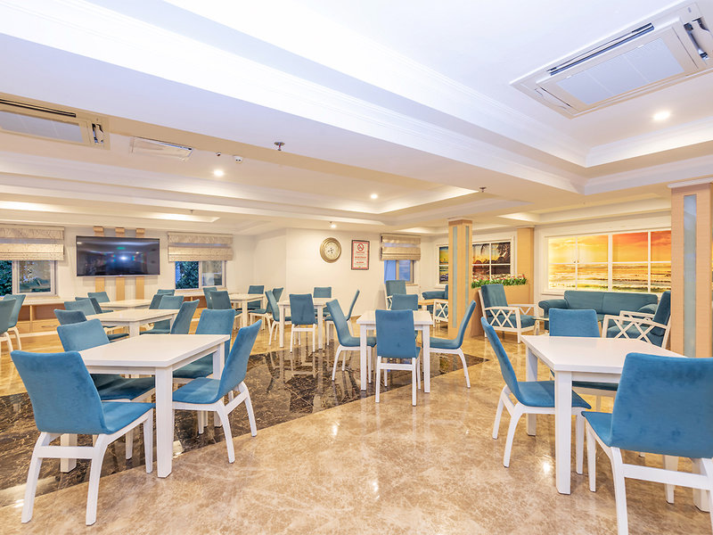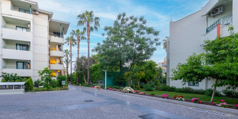 Lage: In bevorzugter Lage, durch die Strandpromenade vom kilometerlangen, feinsandigen Strand getrennt. Geschäfte, Restaurants in der Umgebung. Das historische Zentrum von Side mit zahlreichen Einkaufs- und Unterhaltungsmöglichkeiten ist ca. 30 Gehminuten entfernt (öffentliche Minibusse).