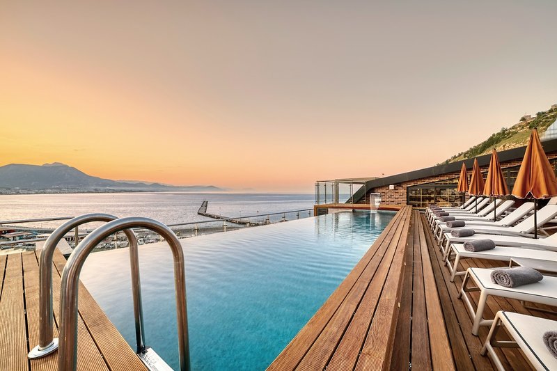 - 1 Pool: ganzjährig geöffnet, auf der Dachterrasse, beheizbar, ca.1.11.-30.4. beheizt, Süßwasser, Sonnenschirme, Liegen, Badetuch