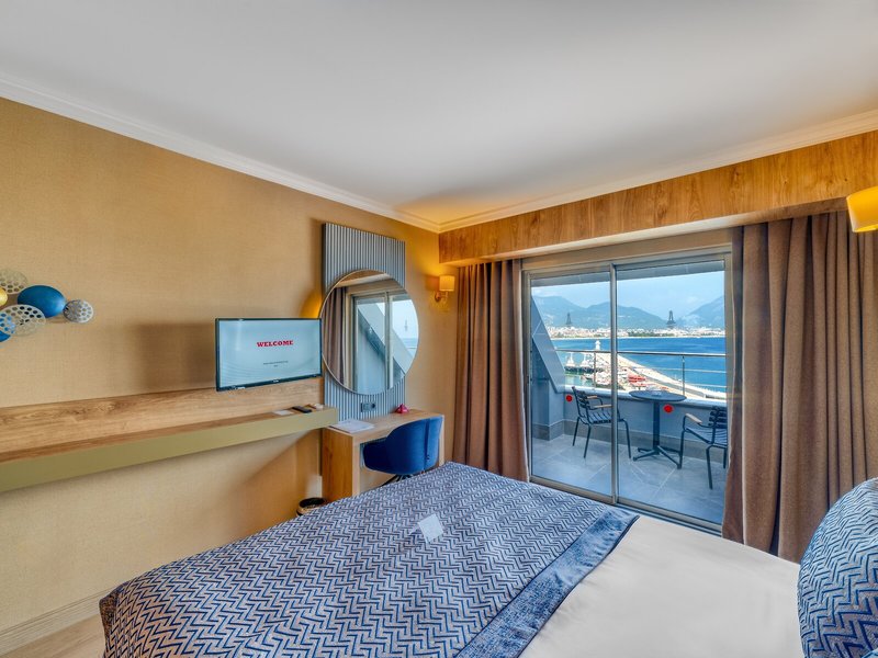 - Štandardná izba s výhľadom na more (DZM1), dvojlôžková izba, nefajčiarska izba, v hlavnej budove, výhľad na more, cca 20 - 24 m², naposledy kompletne zrekonštruovaná v roku 2023, celkový počet izieb v tomto type izby: 1, rozloženie: kombinovaná obývacia izba/spálňa, 1 manželská posteľ, 1 rozkladacia pohovka, klimatizácia: bezplatná, sezónna; závislé od počasia, individuálne nastaviteľné, studené, teplé, podlaha: laminátová, trezor: zadarmo, pohovka, žehlička, žehliaca doska, kávovar Nespresso, kávovar/čajník, minibar: za poplatok, nealkoholické nápoje: za poplatok, voda: zadarmo, alkoholické nápoje: za poplatok, občerstvenie: za poplatok, dopĺňanie minibaru: denne 8:00 - 16:00, telefón, internet: WLAN/WiFi: zadarmo, televízor, izbová služba: denne 24 hodín, za poplatok, upratovacia služba: denne 8:00 - 16:00, zadarmo, sprcha, WC, župan: zadarmo, papuče: zadarmo, fén, kozmetické zrkadlo, balkón: so sedením