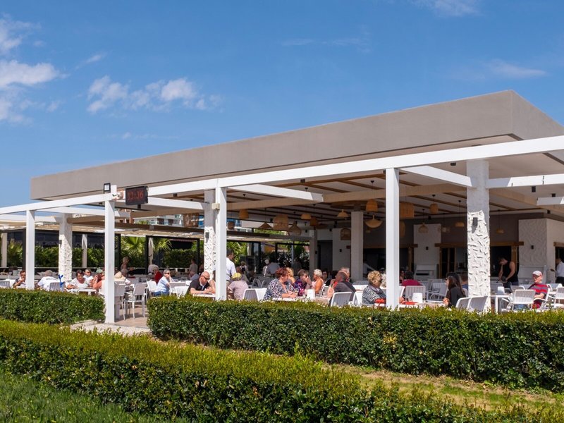 Ausstattung: Garten, 2 Pools, Kinderpool, Wasserrutsche. Liegen, Schirme, Auflagen, Handtücher am Pool und am Strand (geg. Geb.), Pool-/Snackbar, Sonnenterrasse. Empfangshalle, Rezeption, Lobby-Bar, Lounge. Restaurant (Buffet) mit nationalen und italienischen Speisen, Terrasse, Minimarkt, Shop, Friseur, Diskothek, Parkplatz (geg. Geb.). 283 Zimmer, 5 Etagen, 2 Nebengebäude, 3 Lifte.