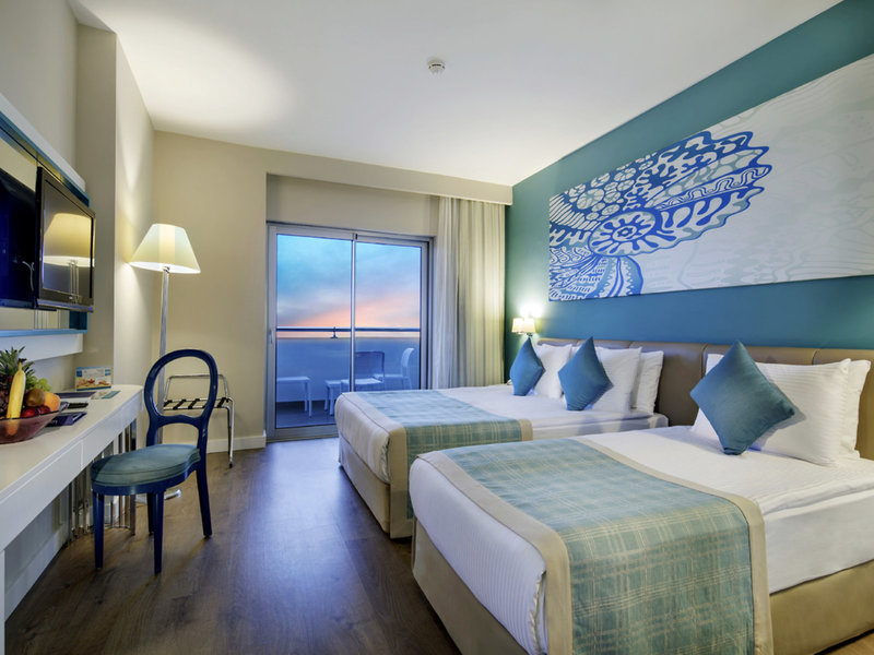 - Double Standard Sea View Room (DZM1), Doppelzimmer, Meerblick, ca. 34 m², Gesamtanzahl der Räume in diesem Zimmertyp: 1, Aufteilung wie folgt: 1 Schlafzimmer, 1 Einzelbett, 1 Doppelbett, Babybett: ohne Gebühr, Klimaanlage: ohne Gebühr, zentral gesteuert, Fußboden: Laminat, Safe: ohne Gebühr, Kaffee-/Teezubereiter, Wasserkocher, Minibar: ohne Gebühr, bei All Inclusive inklusive, Softdrinks: ohne Gebühr, bei All Inclusive inklusive, Wasser: ohne Gebühr, bei All Inclusive inklusive, Minibarauffüllung: täglich, Telefon, Internet: WLAN/WiFi: ohne Gebühr, Fernseher: deutsches Programm, Sat-TV, Reinigungsservice: ohne Gebühr, Dusche, Regendusche, WC, Bademantel: ohne Gebühr, Slipper: ohne Gebühr, Föhn, Kosmetikspiegel, Balkon: mit Sitzgelegenheit