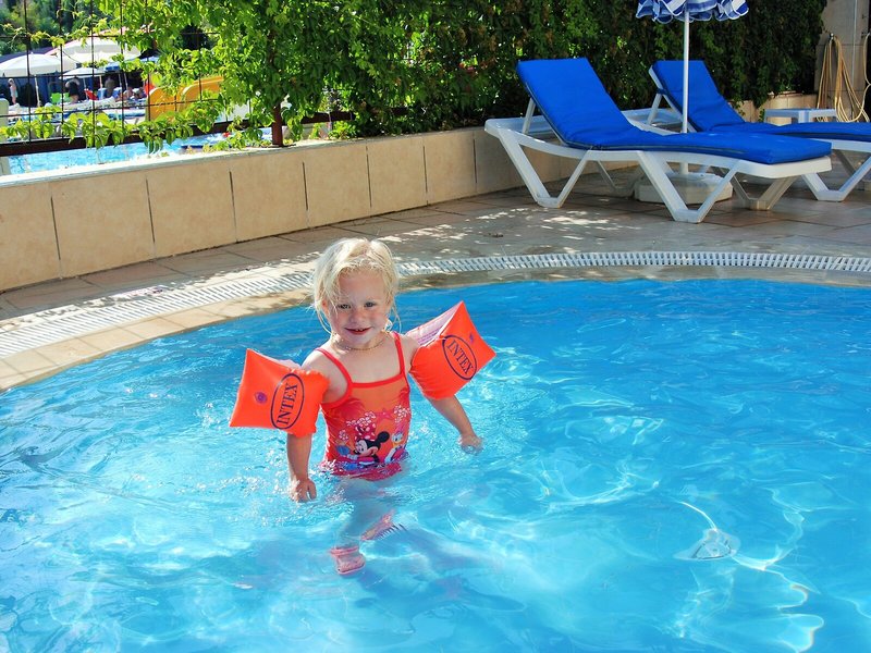 - Pools:Kinderbecken, Indoor Pool, Outdoor Pool, Sonnenschirme am Pool, Liegen am Pool, Wasserrutsche