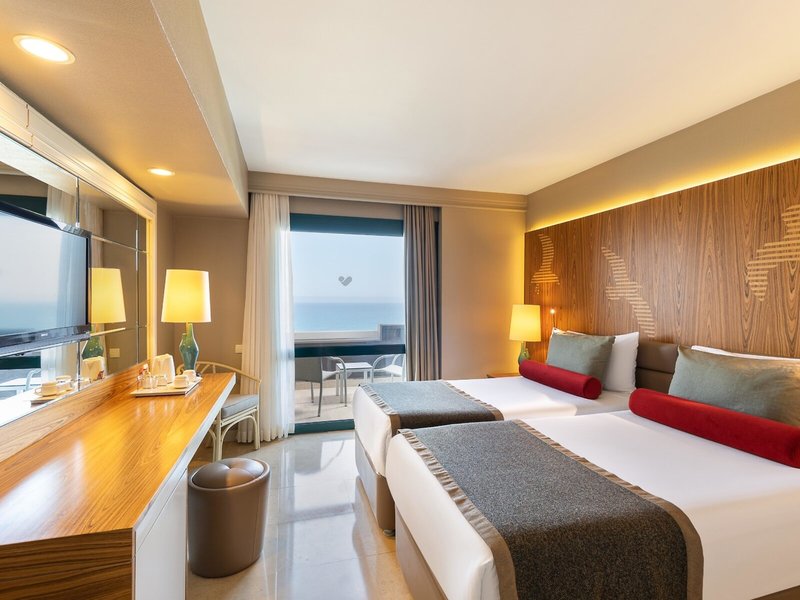 - Senioren Room French Balcony Sea View (DZM4), Doppelzimmer, Nichtraucherzimmer, Meerseite, Meerblick, ca. 30 m², letzte Komplettrenovierung 2014, Gesamtanzahl der Räume in diesem Zimmertyp: 1, Aufteilung wie folgt: kombiniertes Wohn-/Schlafzimmer, 2 Einzelbetten, 1 Schlafsofa, Babybett: ohne Gebühr, Anfrage & Reservierung nicht notwendig, Klimaanlage: ohne Gebühr, saisonabhängig; wetterabhängig, zentral gesteuert, kalt, warm, Fußboden: Fliesenboden, Safe: ohne Gebühr, Sitzecke, Kaffee-/Teezubereiter, Minibar: ohne Gebühr, Softdrinks: ohne Gebühr, Wasser: ohne Gebühr, Minibarauffüllung: täglich, Telefon, Internet: WLAN/WiFi: ohne Gebühr, Fernseher: Flatscreen, deutsches Programm, Sat-TV, Roomservice: 24 Stunden, gegen Gebühr, Dusche, WC, Föhn, Französischer Balkon