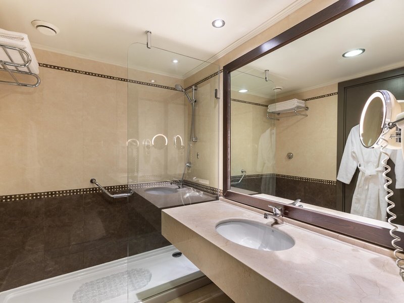 - Large Standard Terrace (DZX5), Doppelzimmer, im Hauptgebäude, ca. 35 m², letzte Teilrenovierung 2019, Gesamtanzahl der Räume in diesem Zimmertyp: 1, Aufteilung wie folgt: kombiniertes Wohn-/Schlafzimmer, 1 Einzelbett, 1 Doppelbett, 1 Schlafsofa, Babybett: ohne Gebühr, Klimaanlage: ohne Gebühr, saisonabhängig; wetterabhängig, zentral gesteuert, kalt, warm, Fußboden: Fliesenboden, Safe: ohne Gebühr, Minibar: ohne Gebühr, Softdrinks: ohne Gebühr, Wasser: ohne Gebühr, Minibarauffüllung: täglich, Internet: WLAN/WiFi: ohne Gebühr, Fernseher: Flatscreen, Sat-TV, Roomservice: 24 Stunden, gegen Gebühr, Dusche, Terrasse